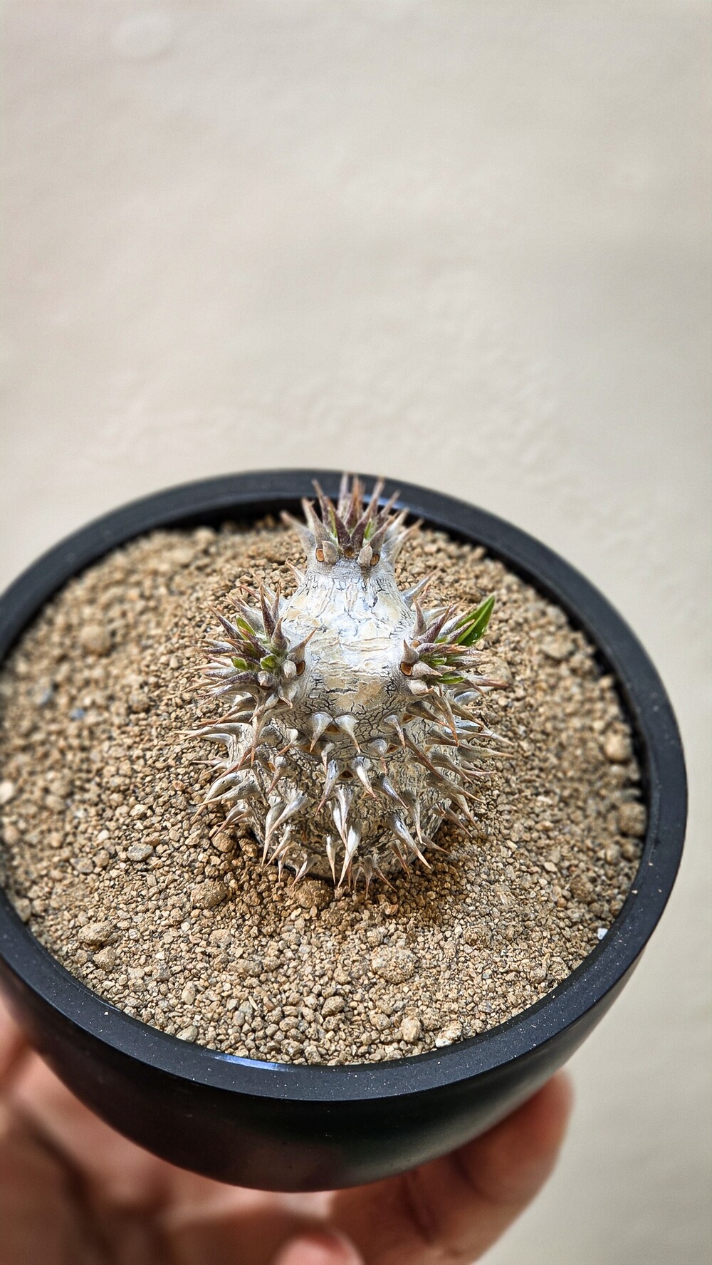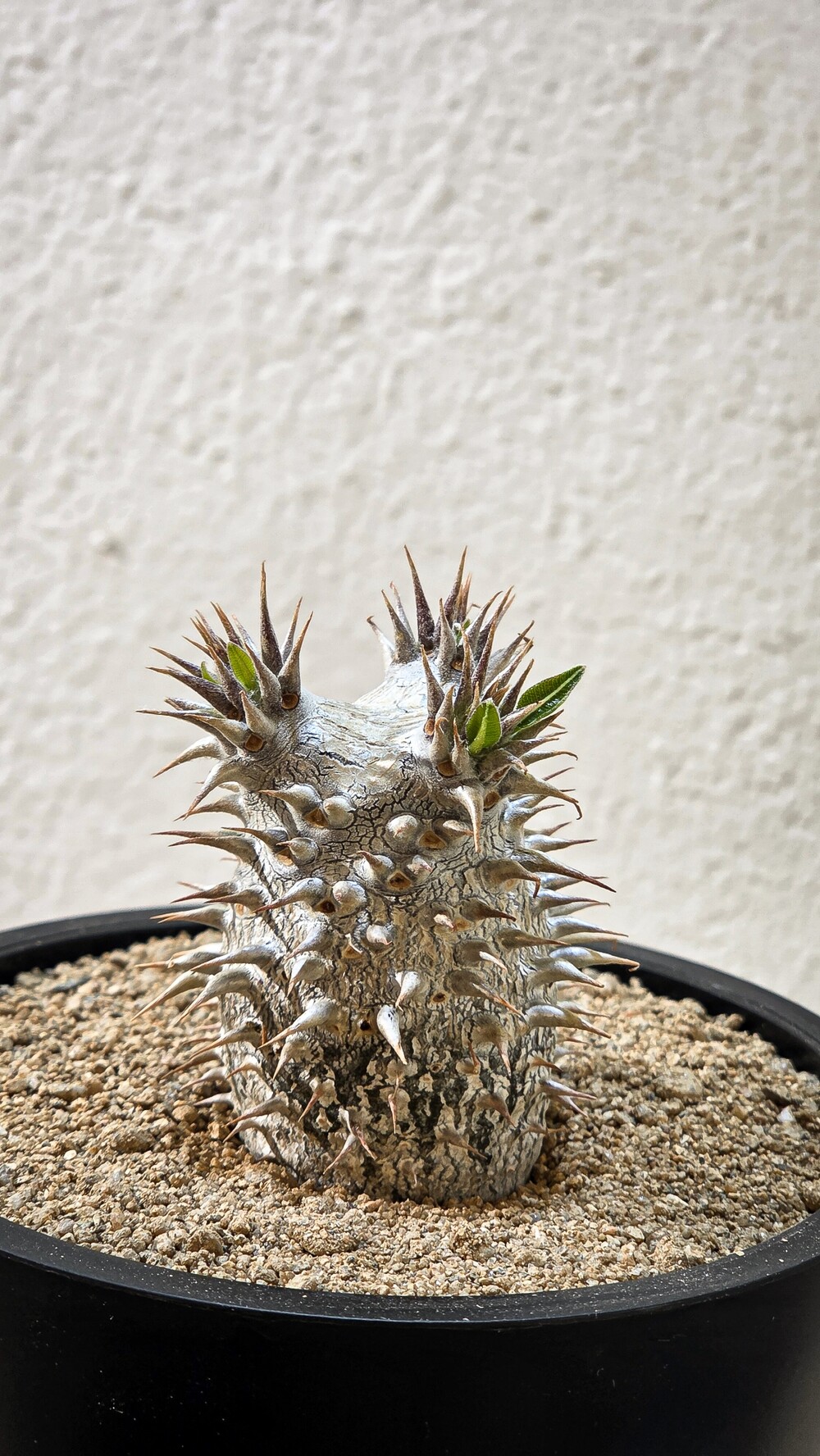 🌿 잎이 떨어지는 휴면기에 들어가면 급수량을 줄여주어야 합니다. 평소에도 일반적인 Pachypodium 속 식물과 비교했을때 2-3일 늦게 주셔도 괜찮을만큼 적은 물량으로도 성장하는 식물인만큼 적은 물량으로 관리하셔도 되는 식물입니다.
