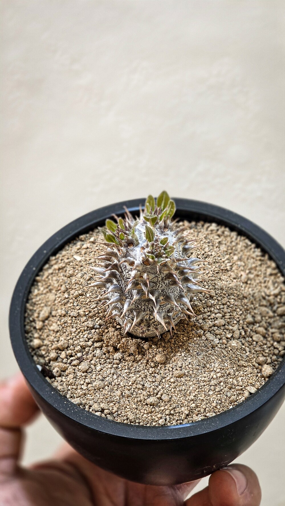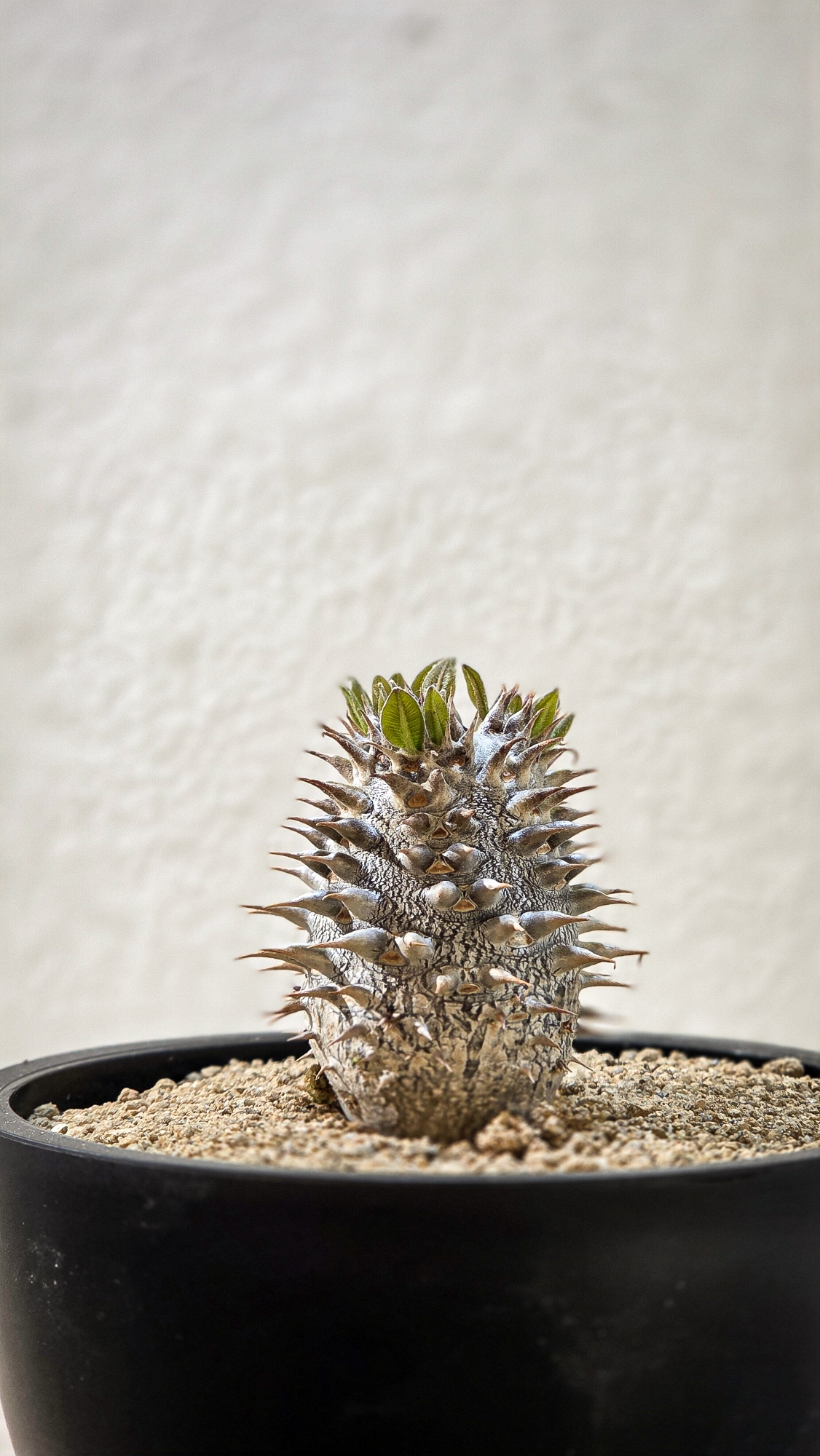🌿 잎이 떨어지는 휴면기에 들어가면 급수량을 줄여주어야 합니다. 평소에도 일반적인 Pachypodium 속 식물과 비교했을때 2-3일 늦게 주셔도 괜찮을만큼 적은 물량으로도 성장하는 식물인만큼 적은 물량으로 관리하셔도 되는 식물입니다.