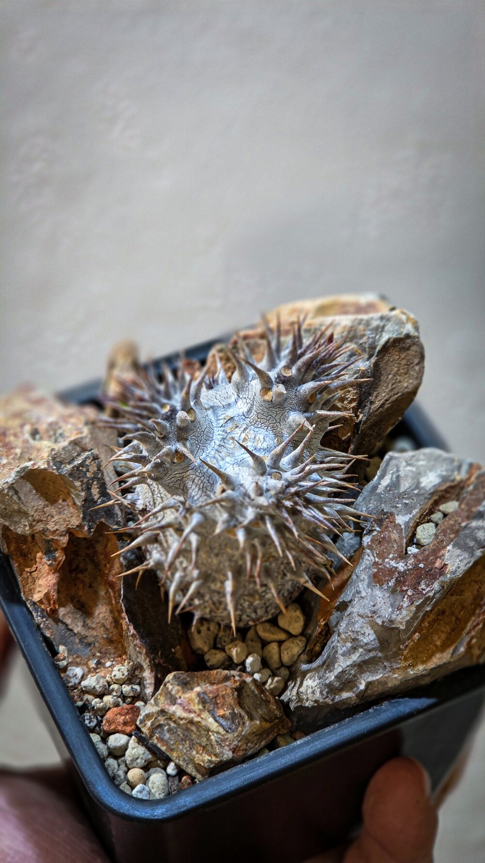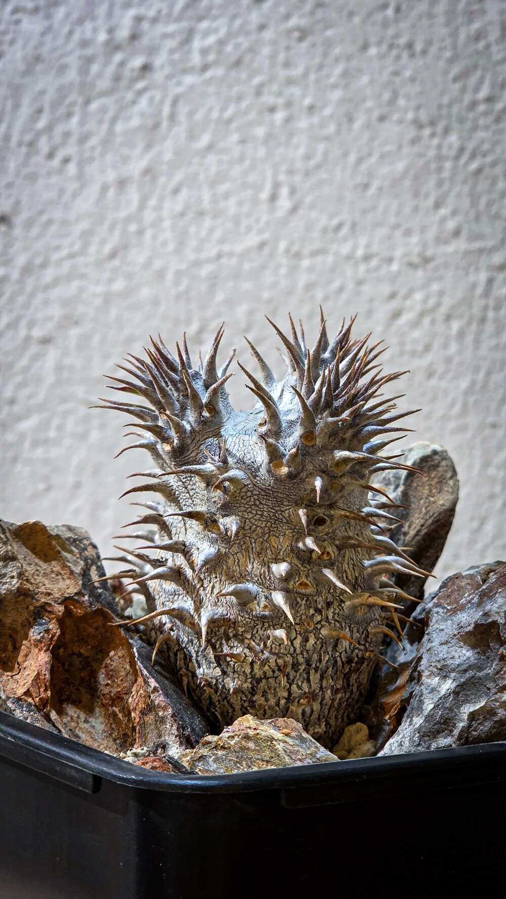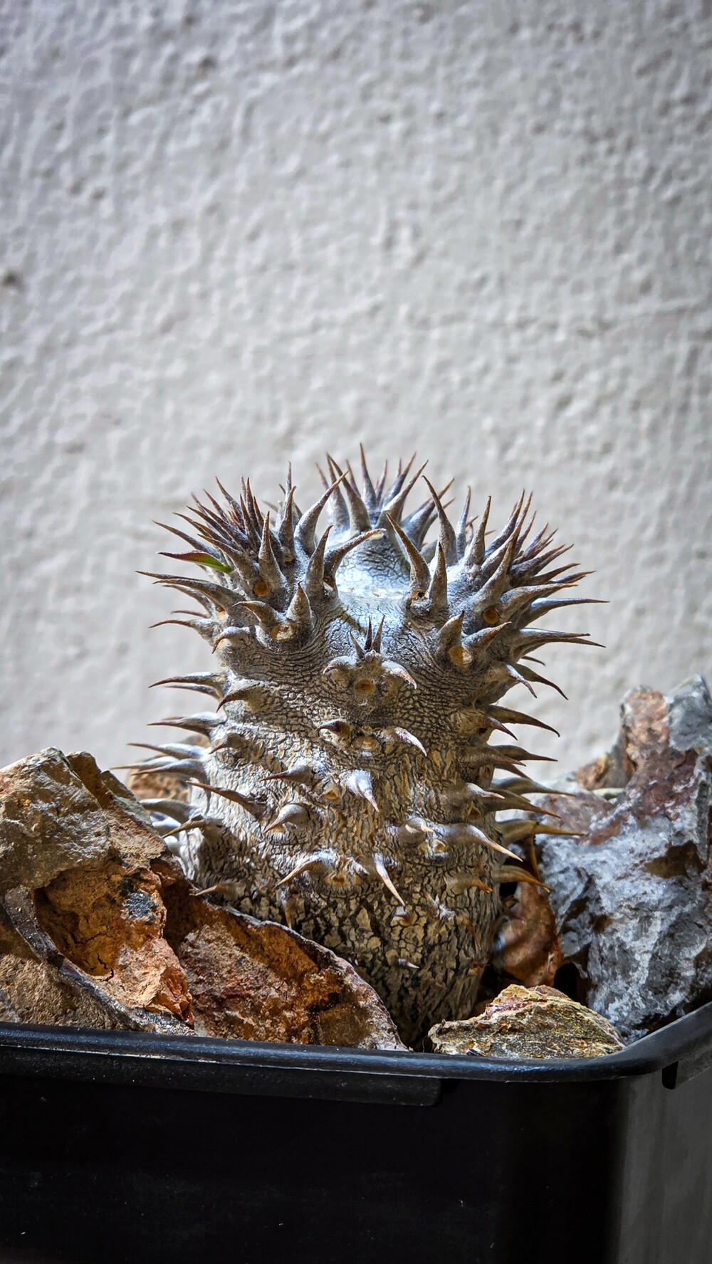 🌿 브래비칼릭스(Pachypodium densiflorum var. brevicalyx)는 따듯해지는 봄부터 가을까지 성장하는 식물로 가장 많은 성장을 하는 시기는 가을입니다. 점차 하엽이지는 가을이 되면 바디에 가장 큰 성장을 보이며, 해당시기에는 통풍의 단게를 높여 선선한 바람이 잘통하게 만들어주면 좋습니다.