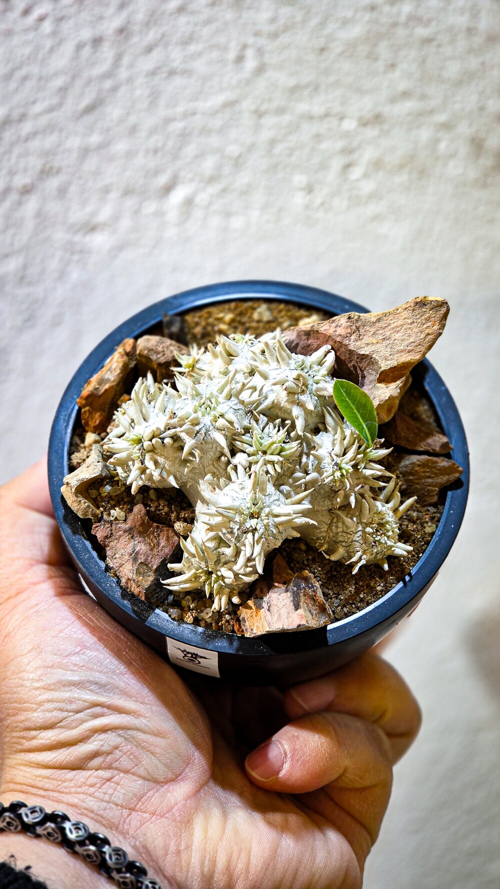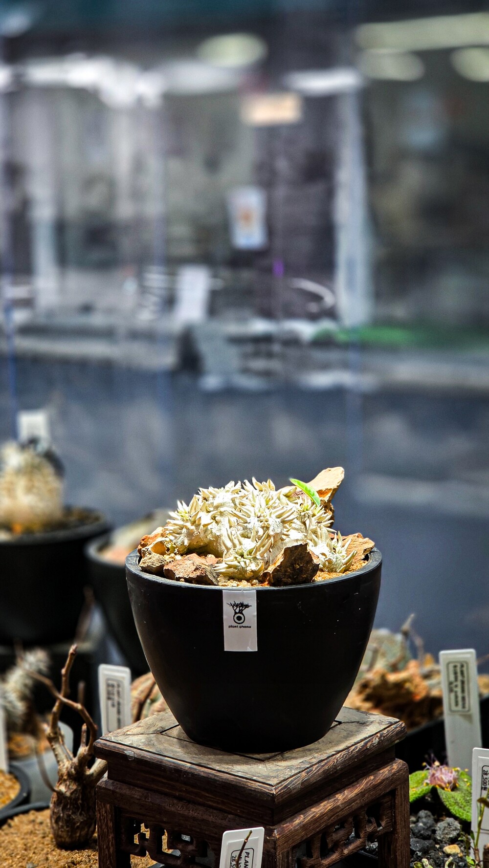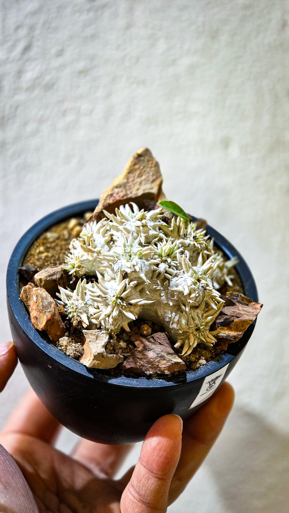 특징으로는 하얀 바디의 빼곡한 생장점, 연출된 바위를 따라 흐르듯 멈춰있는 수형을 가진 멋진 수형의 식물입니다.