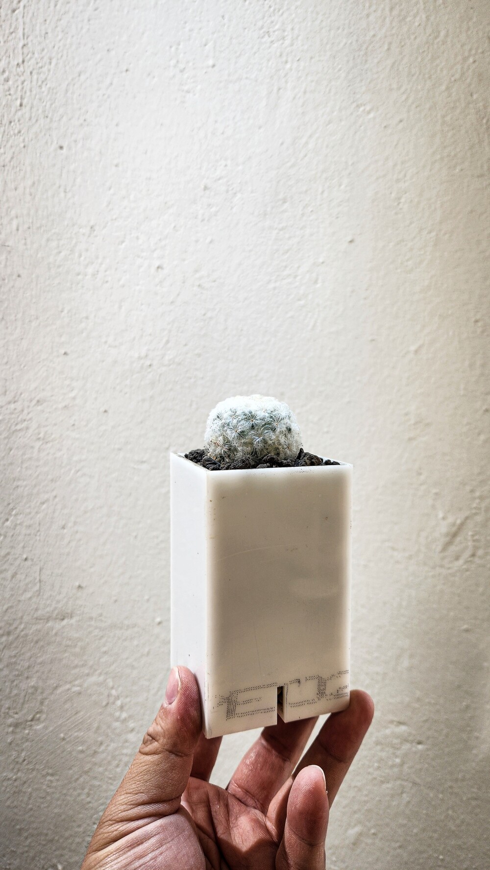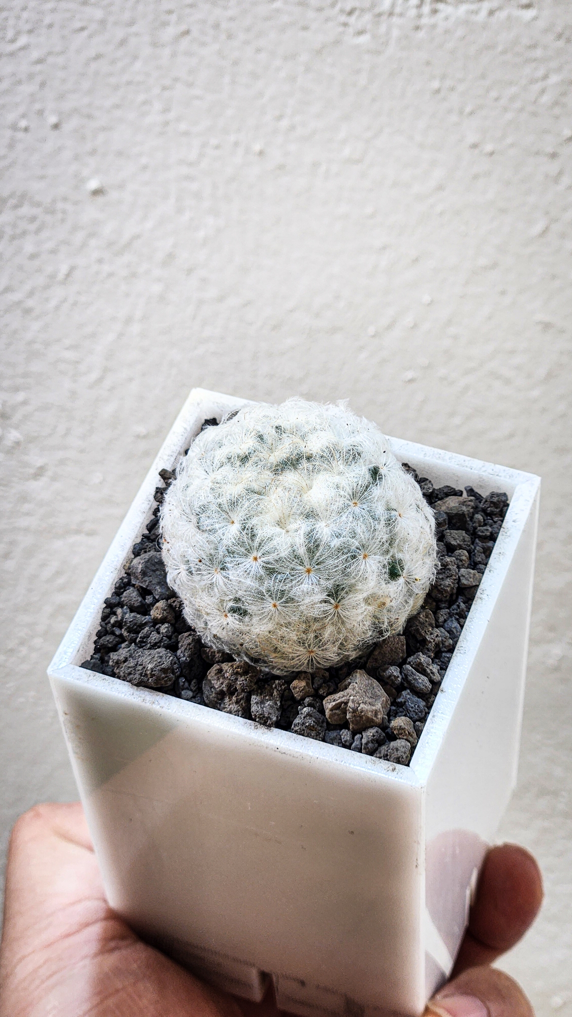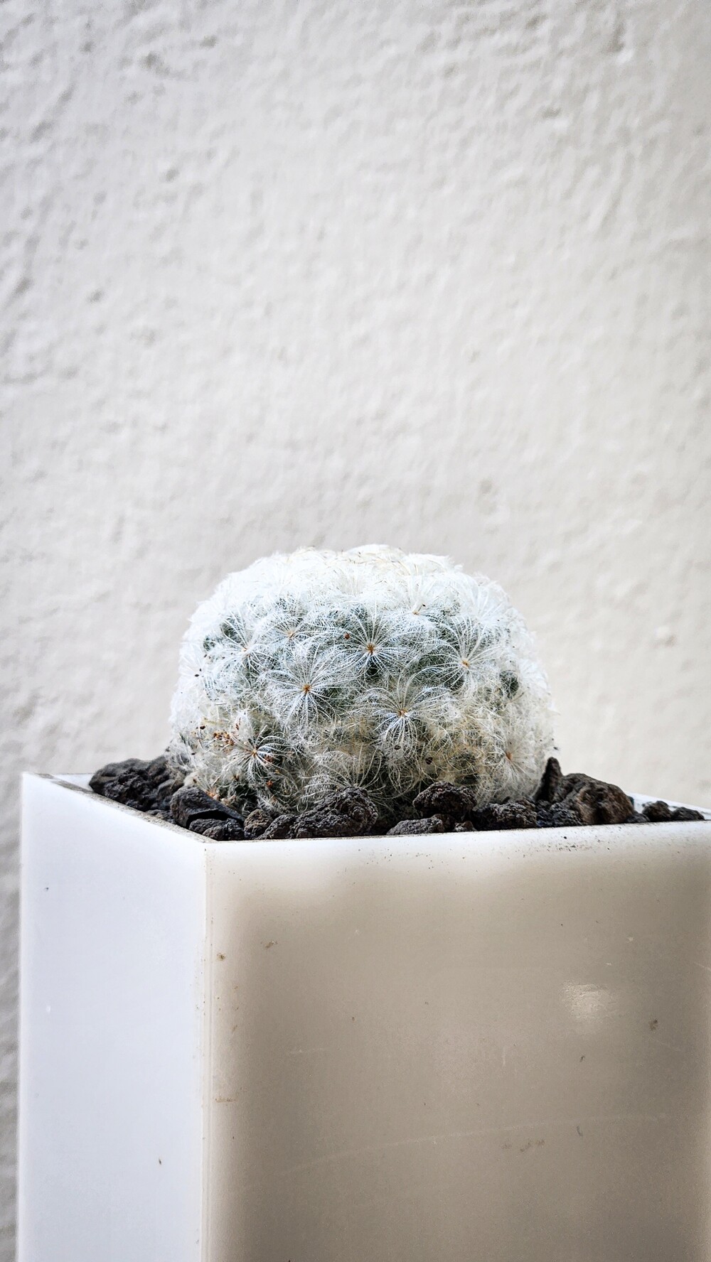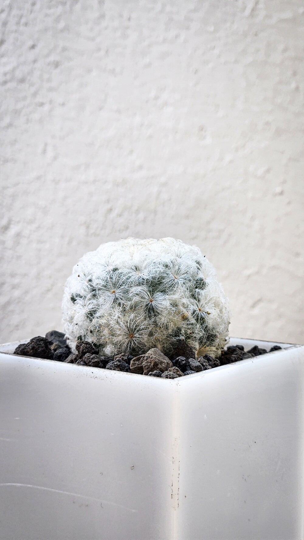 최대 5-8cm 까지 성장하며 몸 전체가 미세한 흰색 깃털로 덮여있어 만져도 가시가 날카롭게 느껴지거나 아프지 않은 선인장 중 하나입니다.