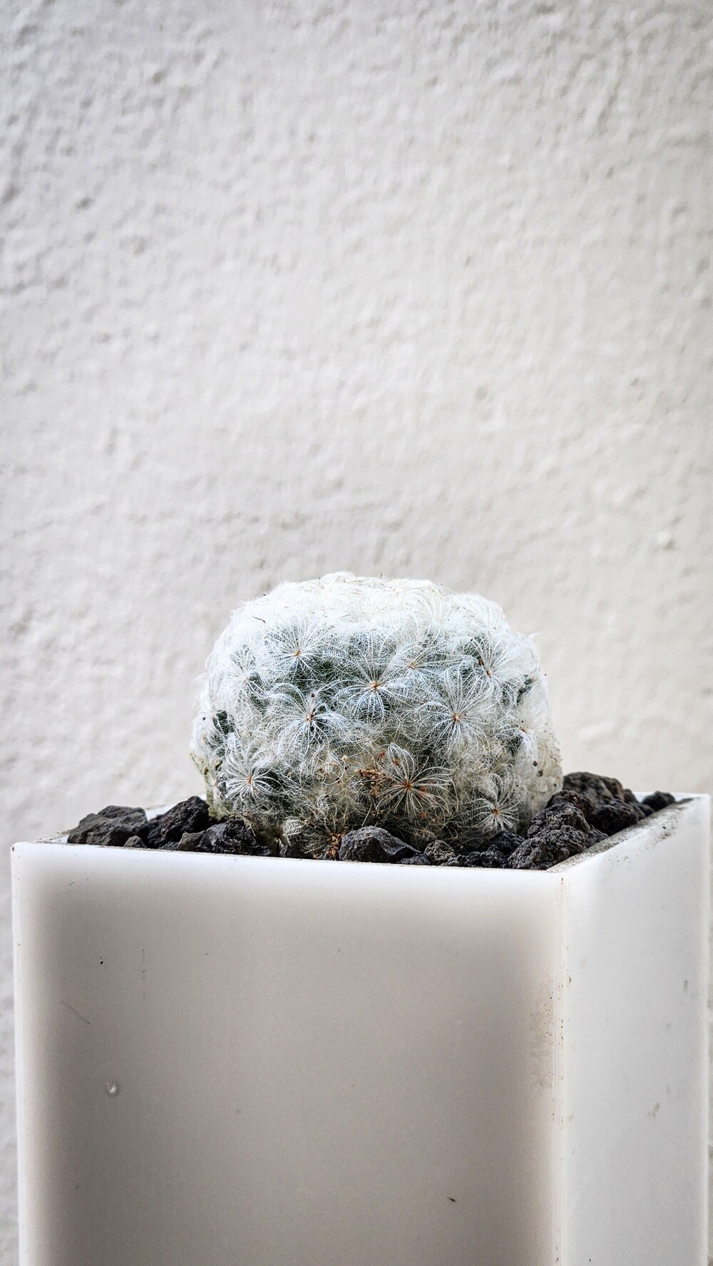 외형 뿐만아니라 이 흰색 털들은 햇빛으로부터 바디를 보호하거나 수분의 증발을 막는 등 식물에게 맞춰진 환경을 조성해주며 그 역할을 톡톡이 해내고 있습니다. 이러한 이유에서 일부 선인장들보다 급수날짜가 조금 미루어졌다하더라도 건강하게 성장하는 편입니다.
