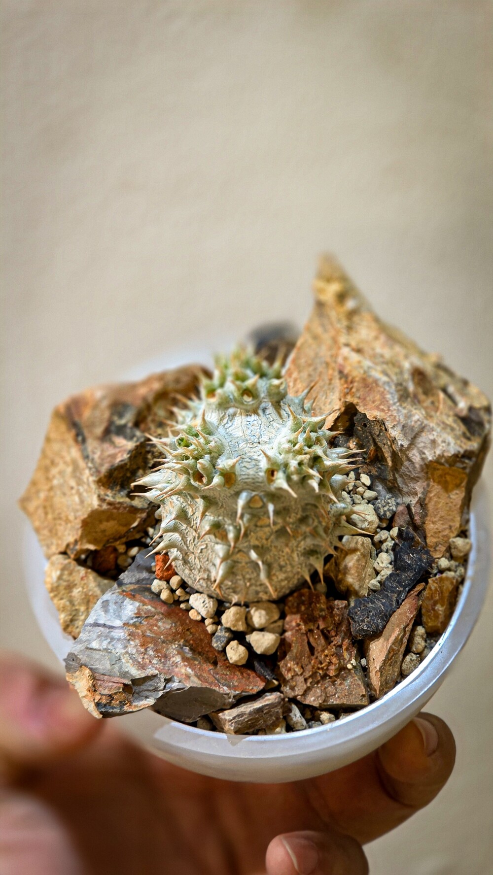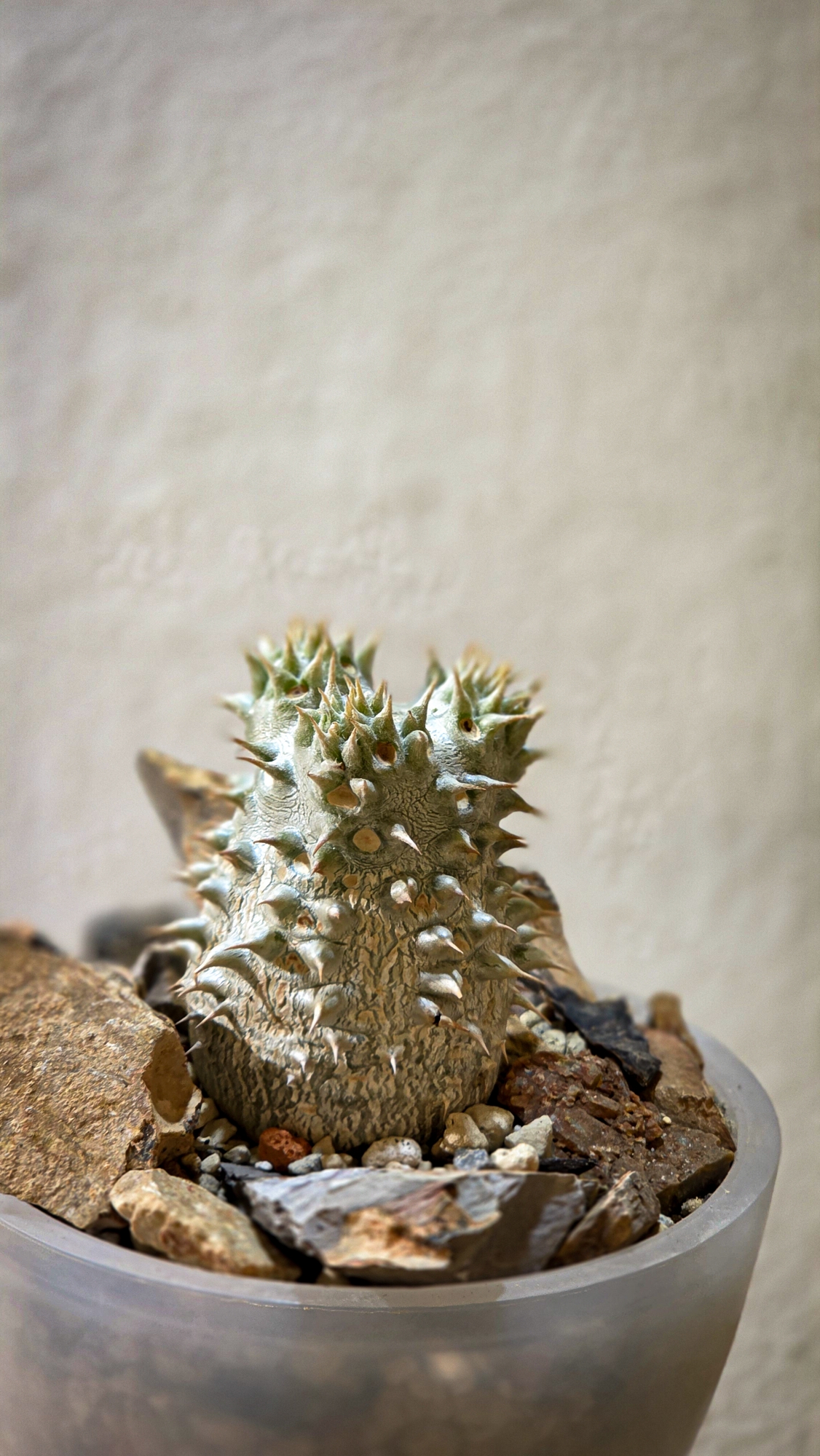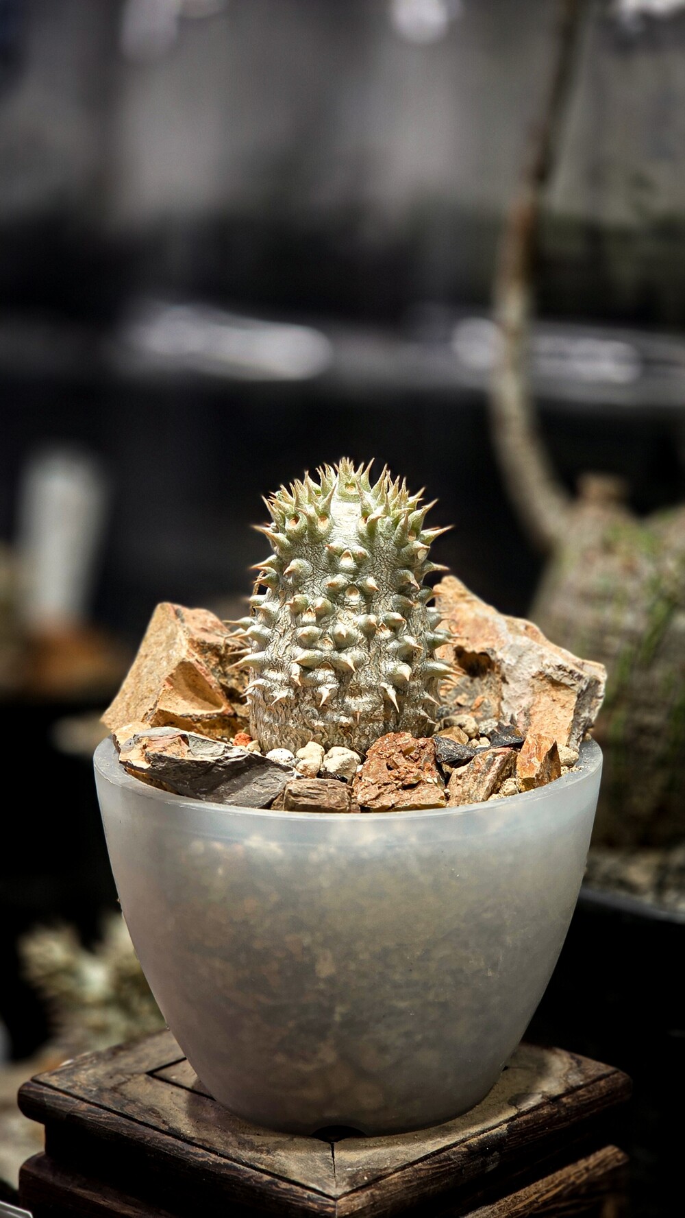 고지대에 서식하는 Pachypodium 속 식물로 성장이 매우 더디며, 해당 사이즈는 수십년의 수령을 가진 것으로 예상합니다.