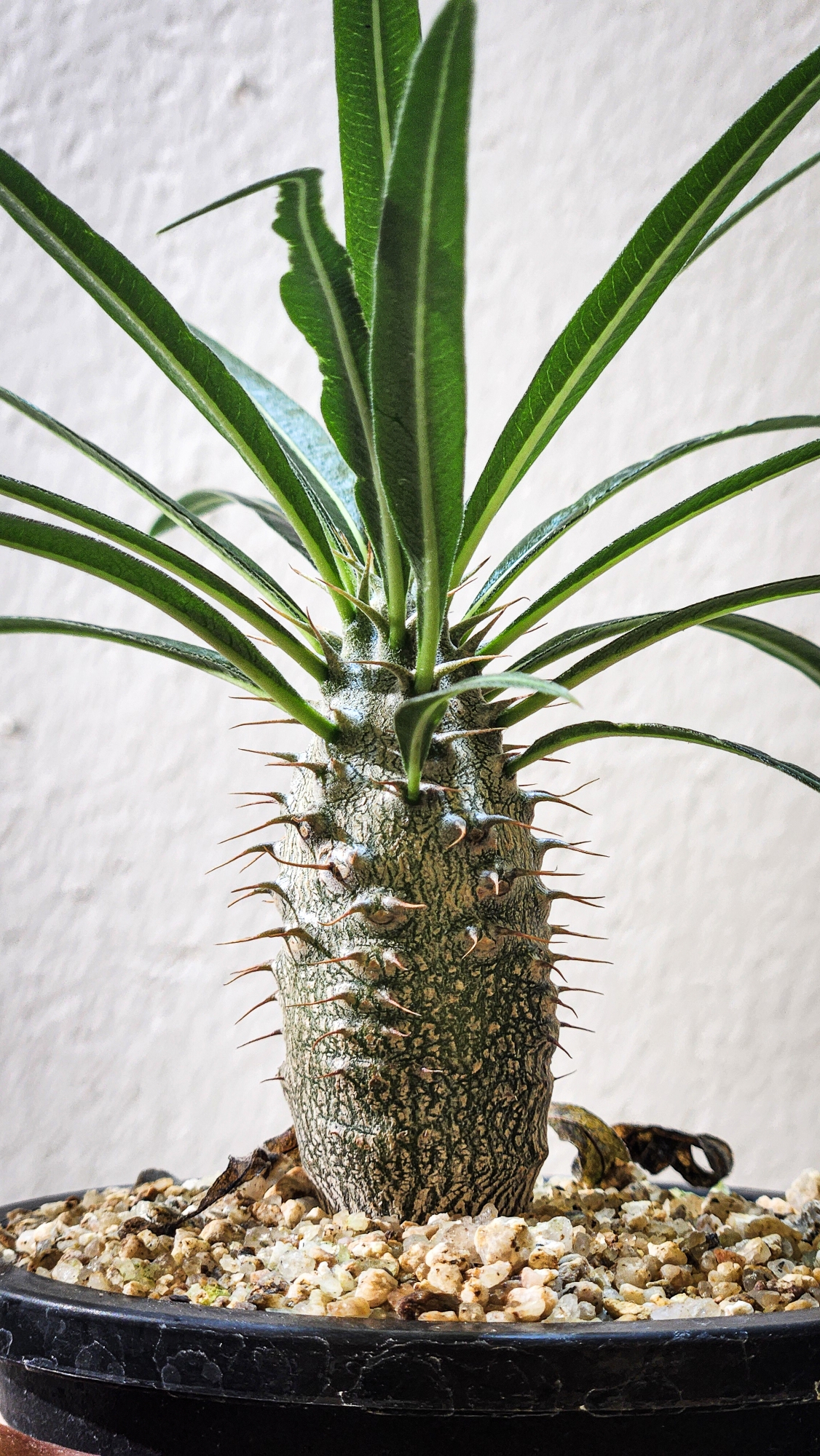 🌿 그락실리우스(Pachypodium gracilius)는 따듯해지는 봄부터 가을까지 성장하는 식물로 가장 많은 성장을 하는 시기는 가을입니다. 점차 하엽이지는 가을이 되면 바디에 가장 큰 성장을 보이며, 해당시기에는 통풍의 단게를 높여 선선한 바람이 잘통하게 만들어주면 좋습니다.